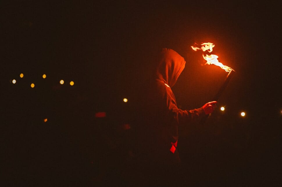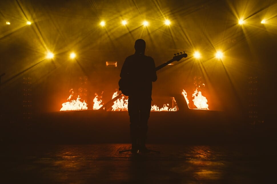 Koncert rozpoczął się wejściem Josha z pochodnią, ubranego w strój, który mogliśmy zobaczyć w najnowszych teledyskach. W momencie kiedy usiadł na perkusji, nieopodal niego zaczął płonąć PRAWDZIWY samochód – bardzo podobny do tego, który pojawił się w teledysku Heavydirtysoul. Ogień może symbolizować zarówno destrukcję jak i odrodzenie. Zważywszy na to, że był to ich pierwszy koncert od ponad roku, chyba możemy nawiązać tu do odradzającego się w ogniu feniksa. Płomienie były tu oznaką nowego początku. Po intro na scenę wszedł Tyler i nadszedł czas na… debiut z Jumpsuit w roli głównej. Nie jestem do końca pewna, czy to wybuch emocji spowodowany pierwszym w życiu live performance tej piosenki, czy ogień z płonącego samochodu tak nas wszystkich rozgrzał, ale odczuwalna temperatura na dole mogła wynosić co najmniej 40 stopni. Ochrona dosłownie ratowała nam życie wodą, choć przypadków omdleń było coraz więcej.